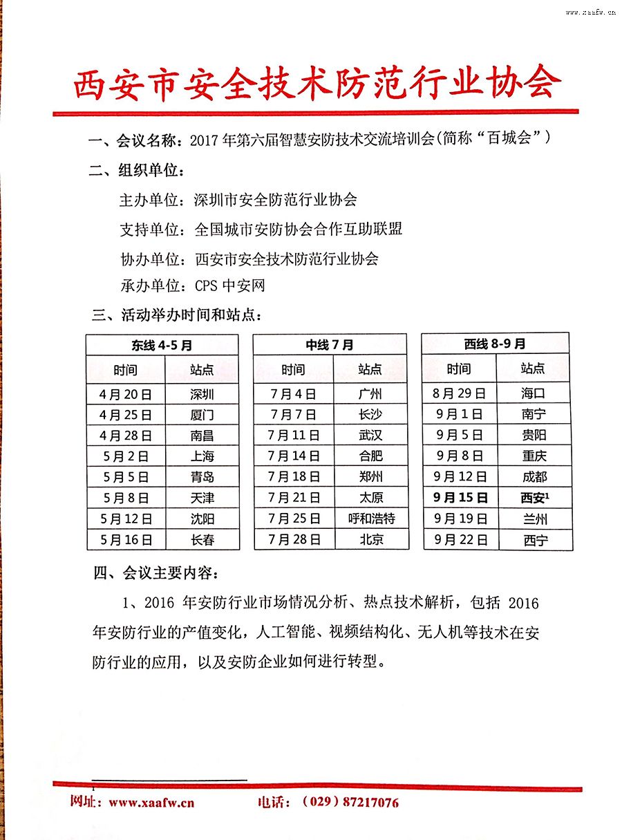 第六届智慧安防技术交流培训会(百城会)9月15日在西安召开
