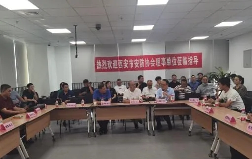 第四站学习交流座谈会,由协会理事长单位陕西远洋科技实业有限公司总经理李军带队,监事长兼秘书长杨育才、副理事长单位陕西鹰威科技有限公司总经理郭建文、监事刘栋、理事单位代表陕西国泰安信电子科技有限公司薛刚总经理,方正国际西安分公司周琪副总经理,西安智慧城市物联网有限公司冯文杰总经理, 西安帝康电子智能科技有限公司杨晓龙副总经理,西安天琛安防设备有限公司邓燕琼总经理,深圳大家来控股集团有限公司西安分公司总经理温金梅,小鱼易连鲁勉经理会员单位代表西安吾创科技周庆总经理,西安嘉安电子技术有限公司总经理张宝山,华铭斯视频会议郭海广, 深圳市中广控潘军龙等一行30余人参加。