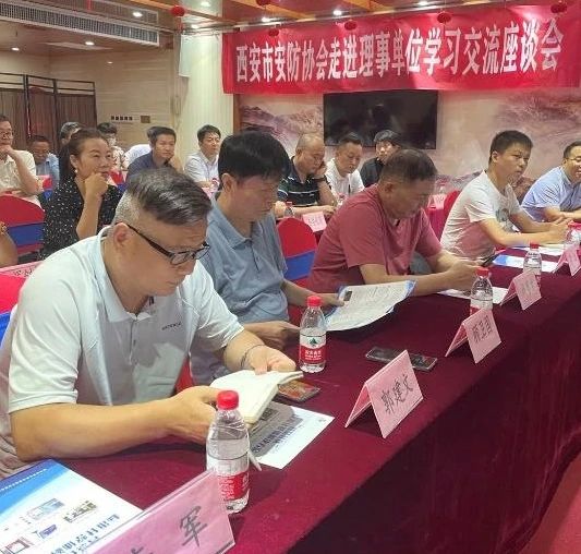 第三站学习交流座谈会,由协会监事长兼秘书长杨育才带队,副理事长单位陕西泛亚智慧科技有限公司顾卫国经理、陕西鹰威科技有限公司总经理郭建文、监事单位陕西载捷智能科技有限公司刘栋经理、理事单位代表方正国际软件(北京)有限公司陕西分公司许高健经理、陕西飞庆安防科技有限公司袁亚锋总经理、陕西国泰安信电子科技有限公司薛刚总经理、陕西聚成通信工程有限公司韩志刚总经理、北京小鱼易连科技有限公司鲁勉经理、西安帝康电子智能科技有限公司康忠良经理、深圳大家来投资发展有限公司西安分公司温金梅经理、陕西迈克高新科技实业集团有限公司李工、西安计用信息监理有限公司罗鑫、西安智慧城市物联网有限公司冯文杰经理等,会员单位西安辉瑞电子科技有限公司总经理程永辉、西安嘉安电子技术有限公司总经理张宝山和路多通、深圳市中广控信息科技有限公司潘军龙经理、 西安优周科技有限公司总经理高少华、西安吾创科技有限公司总经理周庆、陕西畅思信息王兴奎、华铭斯公司郭海广、明景技术公司房昱辰等一行三十余人参加。
