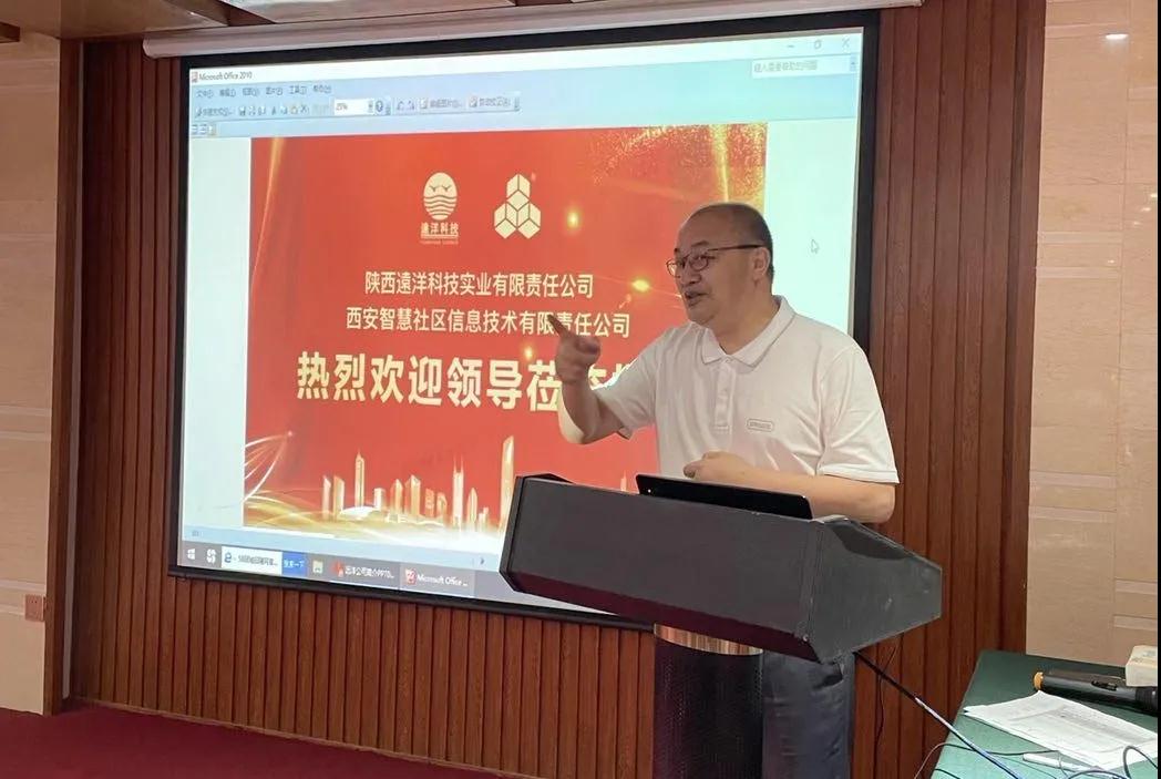 监事长兼秘书长杨育才首先发言,提出协会就是一个联络沟通的桥梁,这次交流座谈会的宗旨:一是贯彻协会2021-2025年工作规划中关于走进企业了解企业的工作;二是通过走进企业了解企业产品、企业技术,宣传企业文化和优势,实现行业应用的发展;表示今天协会带领部分理事单位和会员单位来到陕西远洋科技实业有限公司就是来交流学习,大家通过了解远洋科技,了解智慧社区这个新兴事务的起步和现状、未来。