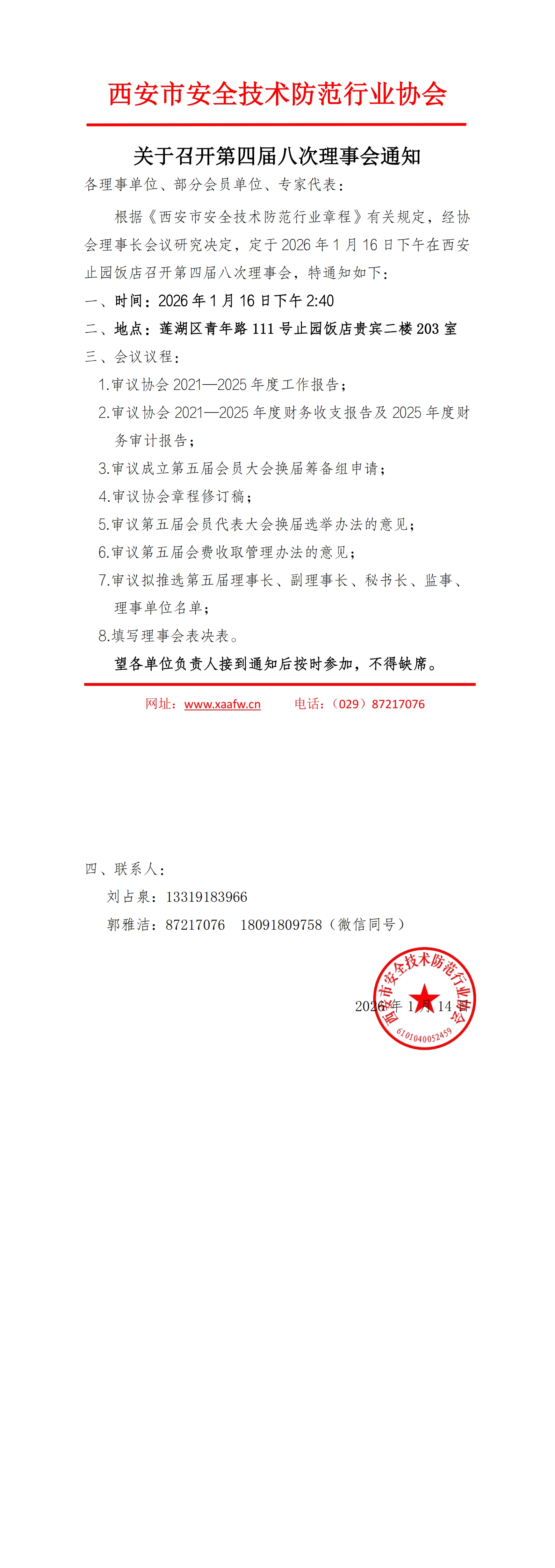 西安安防协会第四届八次理事会通知